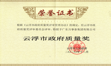 「喜讯」万事泰集团荣膺“云浮市政府质量奖”推荐