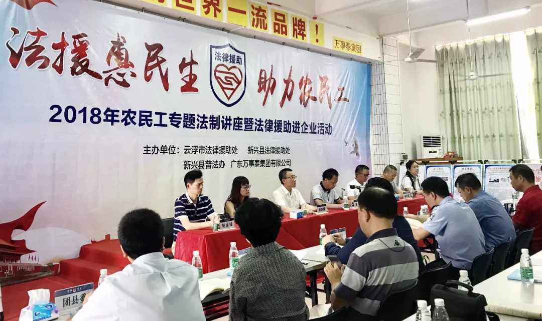 集团讯  9月26日,由云浮市法律援助处、新兴县法律援助处、新兴县普法办、乐竞电竞,全球赛事资讯,一站式竞猜观赛平台有限公司联合开展以“法援惠民生,助力农民工”为主题的“2018年农民工专题法制讲座暨法律援助进企业活动”在万事泰总部三楼培训室顺利举办,新兴县副县长、公安局长谭成、云浮市法援处刘彤主任、县政法委、法院、检察院、公安局、司法局、人社局、总工会、妇联、团委、残联等单位领导出席了本次活动,万事泰常…