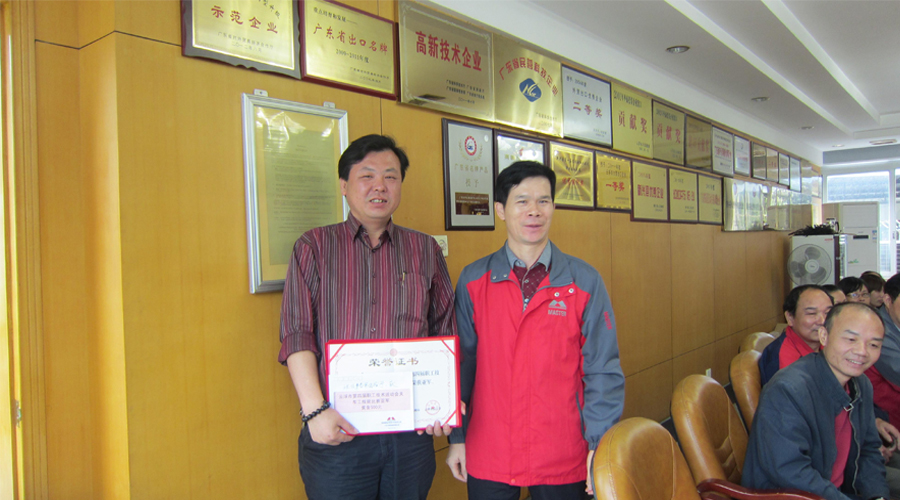 On May 6th, Master Group held a commendation meeting in the Floor 1 conference room in the executive office building and it commended the Group Technology Center that had been awarded as 2014 Guangdong Province “Worker Vanguard”. Li Han from the technical equipment office in Department 1 won the second place in the crane skills contest, the fourth worker technical game in Yunfu City.