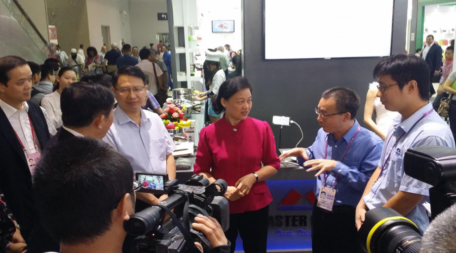On October 24th, the vice governor of Guangdong Province Zhao Yufang, accompanied by Wang Runsheng, the deputy director of Canton Fair and the deputy director of the Foreign Trade Center, visited the exhibition position of Master Group in the 116th Canton Fair. They were accepted by Liu Bingyao, the executive vice president of the Group. The executive vice president-Liu reported to the vice governor-Zhao about the transformation and upgrading of the enterprise, innovation and development, market development and transactions in Canton Fair. The vice governor-Zhao said that the enterprise can have vitality only through innovation and thus the enterprise shall be transformed and upgraded by the brand construction, technological reconstruction and personnel training and the core competitiveness can be improved. Master Group has been committed to the production and export of high-end intelligent kitchenware and its products have been exported to Europe and Americas in which they were acclaimed.