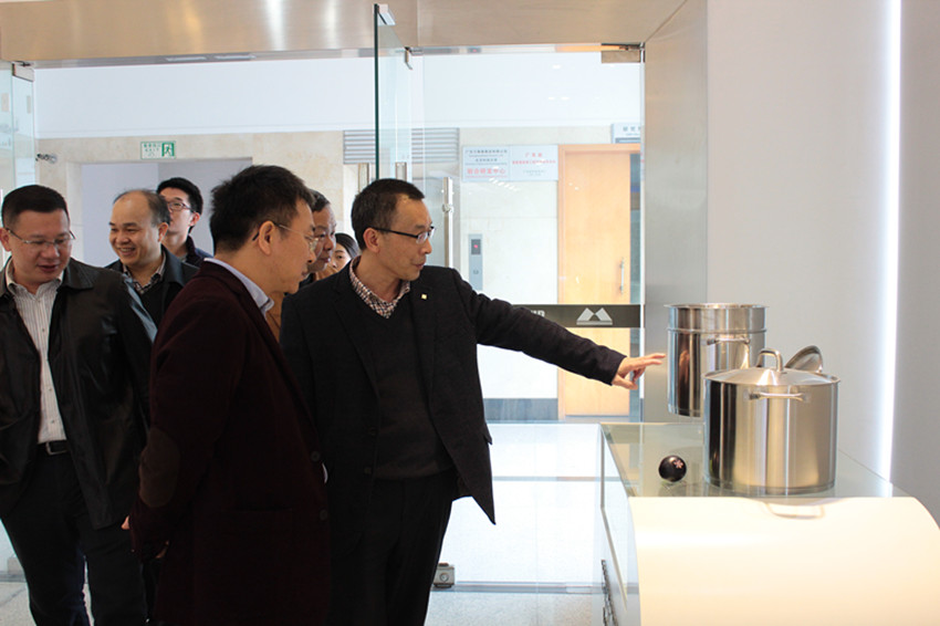 刘炜副厅长一行先后参观了万事泰集团总部大楼、技术中心、生产事业部、检测中心、智能厨房展厅,对集团先进的自动化生产线,高科技的智能餐厨具产品进行深入了解,高度赞扬集团在“产学研”以及科技创新领域的实践发展。