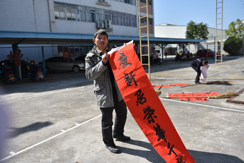 一位员工高兴地说:我特别开心,我不仅拿到了吉祥如意的春联,我更准备好了红纸,让书法老师帮我写“双喜”,这样我儿子准备结婚的“双喜”也就准备好了。