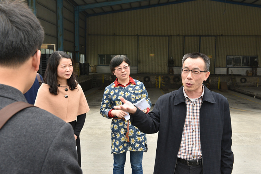 集团常务副总裁刘炳耀向调研团一行介绍集团发展历程。