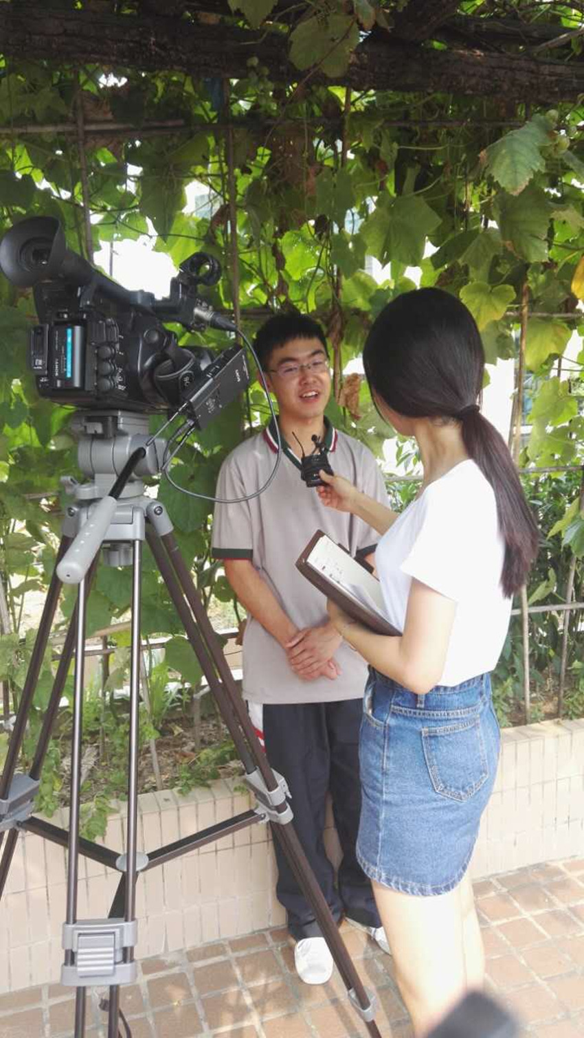 谭叔在石门中学接受记者采访。