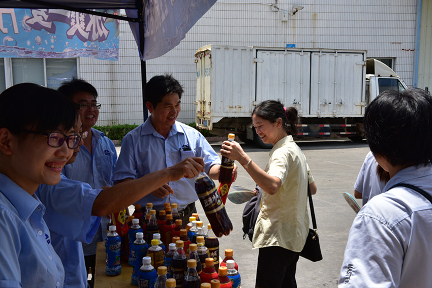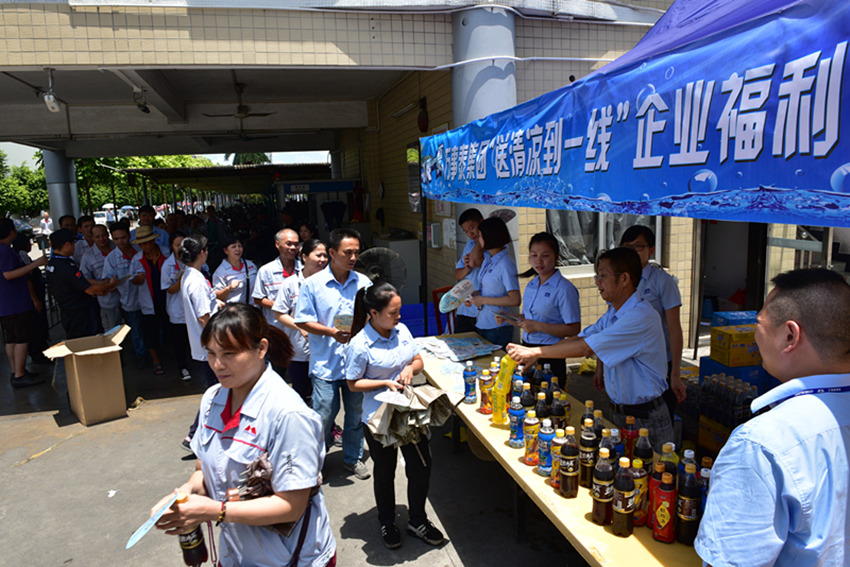 随后,活动的发起部门企业文化部与行政部代表驱车将冰镇饮品送往嘉事泰玻盖车间,为100余名员工送去清凉,事业四部副总经理李耀联合管理层,亲自将饮料送到车间员工手中。