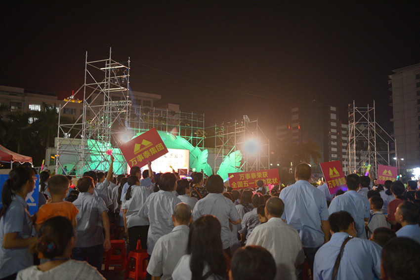 万事泰集团带着政府与总工会的关心,让广大职工、家属真正感受到集团的关爱,万事泰集团工会诚邀集团职工观看演出。当晚7时许,万事泰集团员工们缓缓入场,有序地坐到自己的位置上,精神饱满地欣赏精彩的节目。