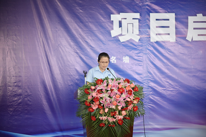 项目领导小组副组长叶树娥在会上介绍项目内容。