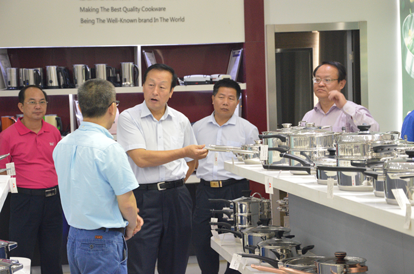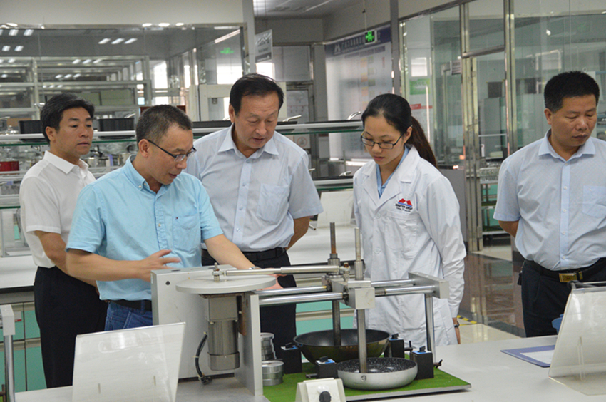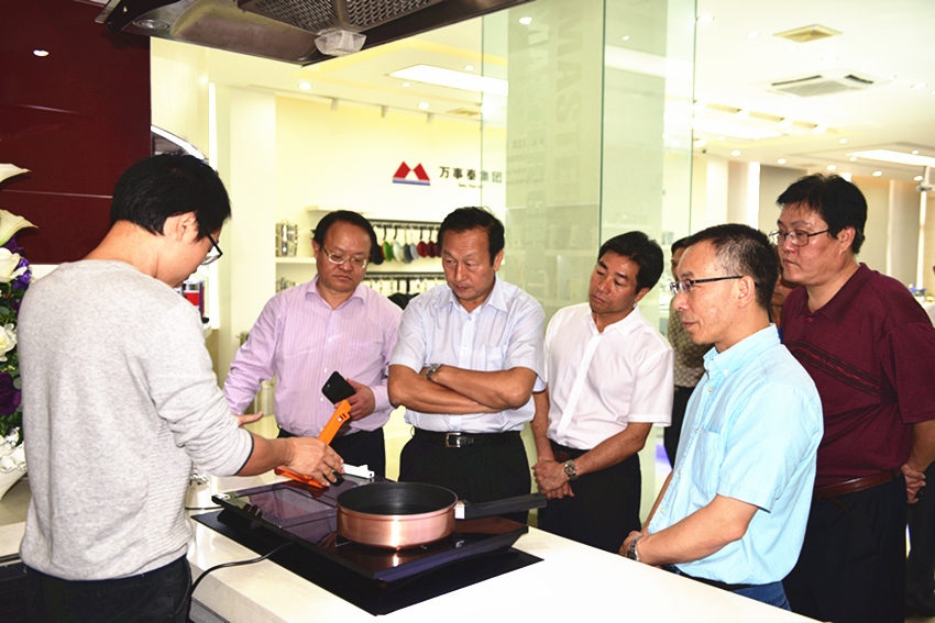 市、县领导一行来到了万事泰集团检测中心,详细了解产品需要经过多道严苛的检验检测,为用户的食品烹饪质量安全把关。随后市、县领导参观了万事泰装配生产车间以及展示厅,集团常务副总裁刘总向市、县领导介绍了万事泰自主研发的智能整体厨房、小家电类明星产品以及荣获德国红点奖的简洁微压锅,同时也介绍了智能整体厨房、传感器和智能技术应用领域对不锈钢餐厨具行业转型升级产生的创新意义。