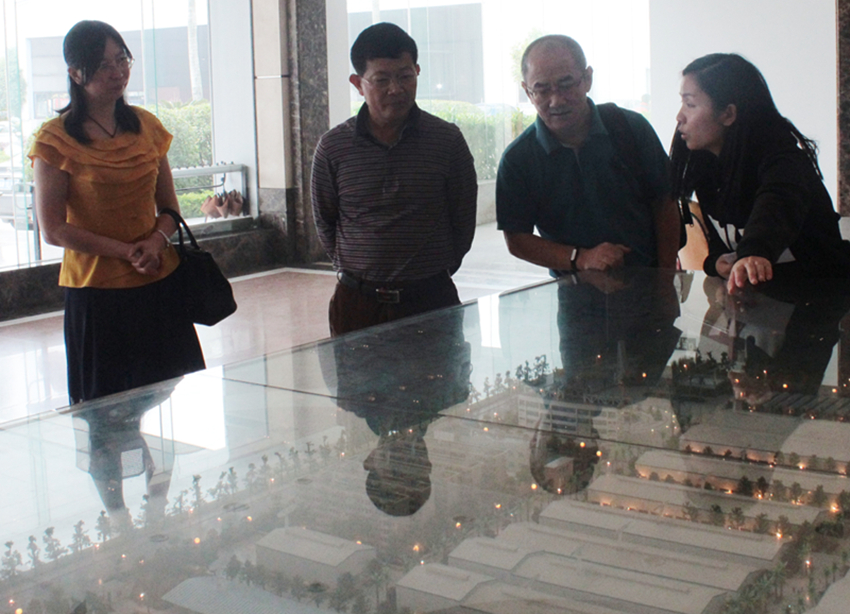 首先,讲解员为调研组的领导们介绍了厂区全景沙盘模型、厂区规划投资情况、产品业务及经营情况等。