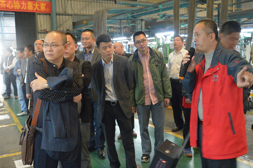集团讯 2016年12月10日上午9时许,广州宝天高科公司常务副总经理麦树芬、生产副总李斌、国内销售总监梁鸿毅、国际销售总监李勇强、财务部总监程向若等20名中高管理层莅临我司参观学习精益化管理经验。集团常务副总裁刘炳耀,总裁办主任梁贤武,总裁办欧剑华、梁中兴等公司高层热情接待来访嘉宾并陪同参观走访,作经验分享交流。