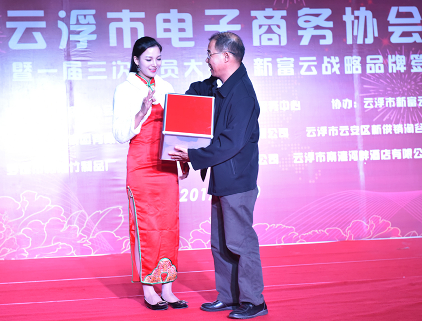 云浮市电子商务协会会长王燕锦为获奖幸运儿颁奖