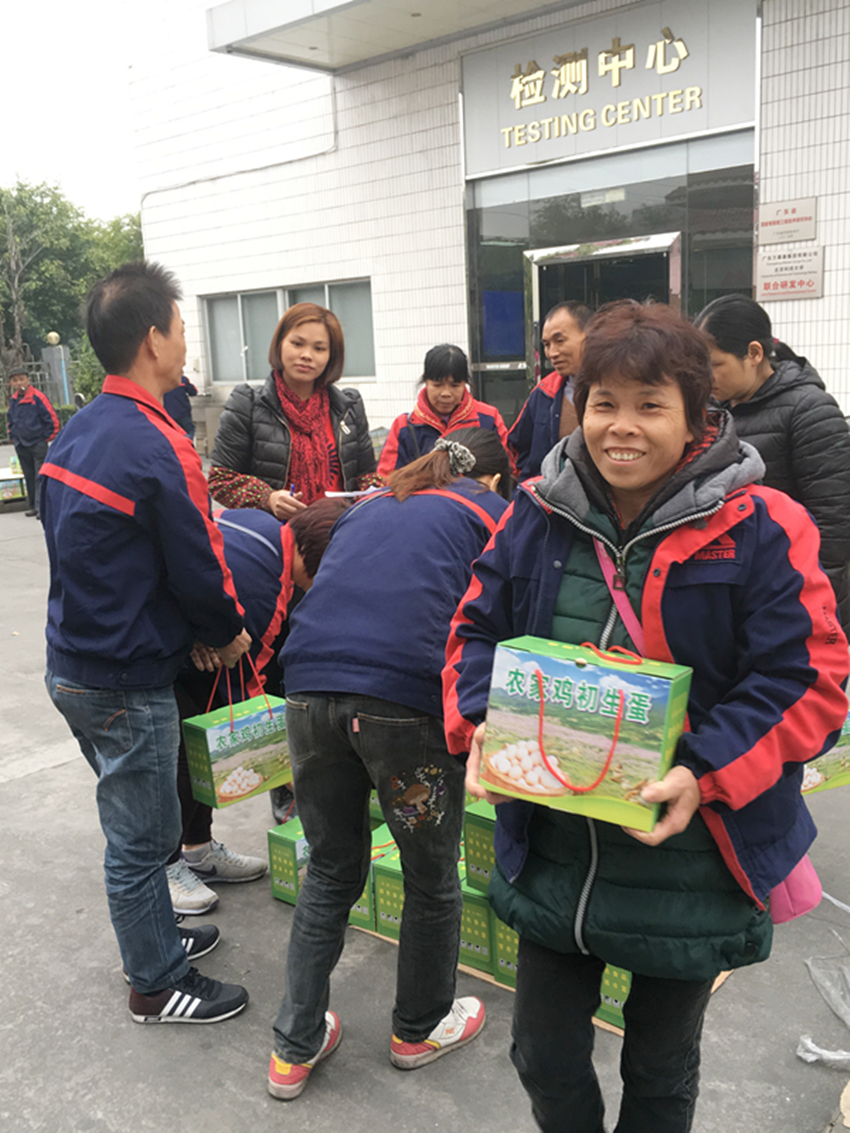 集团提前精心筹备了该次活动,并亲手为每一位员工送上一份精美的礼品——鸡蛋。现场近2000逾名员工出席参加,一条条井然有序的队伍像蜿蜒的长蛇,连绵不绝。员工们接过鸡蛋后,脸上笑逐颜开,现场顿时笼罩在一片笑语盈盈的氛围中。