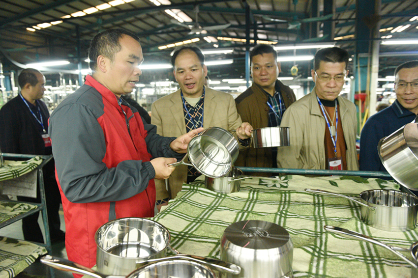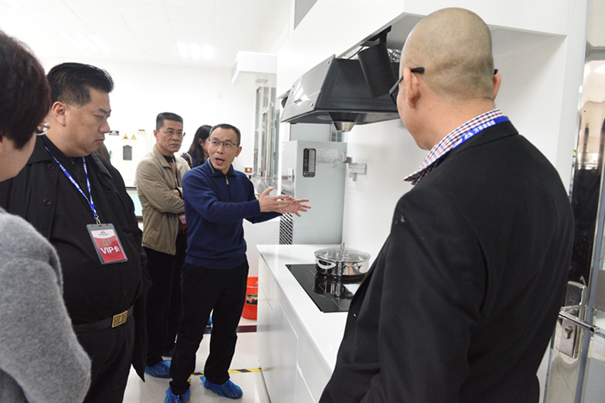 梁家兴一行在刘总的带领下先后来到事业部各车间、技术中心、检测中心和产品展示厅。刘总为大家介绍了万事泰集团产品的生产环节、工艺特点及质量检测的严谨性。参访团对万事泰集团所有产品在制造过程中的整体品质和高端质量水平表示赞叹不已。