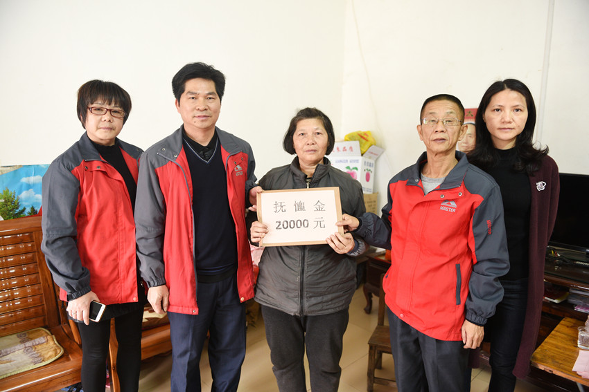 集团领导们亲切地询问了她们的生活情况,从中了解到其家庭经济上拮据,绝情的疾病花费了赵贤杏家庭的一大笔积储,集团领导心感并为赵贤杏的母亲送上了2万元的抚恤金。赵贤杏家属接过抚恤金激动地说到:感谢万事泰集团关心与关怀,它就像我的家人一样,不会感到孤单在生活着。
