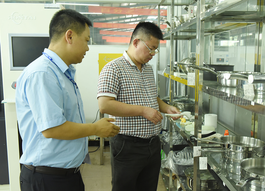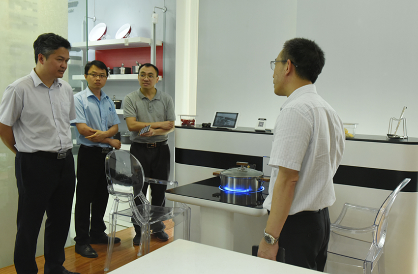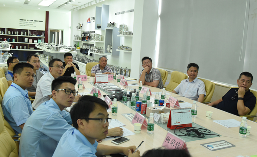谭杰斌一行先后来到集团检测中心、省级技术中心以及四楼产品展示厅,并在四楼展示厅开展“工业设计调研”座谈会。