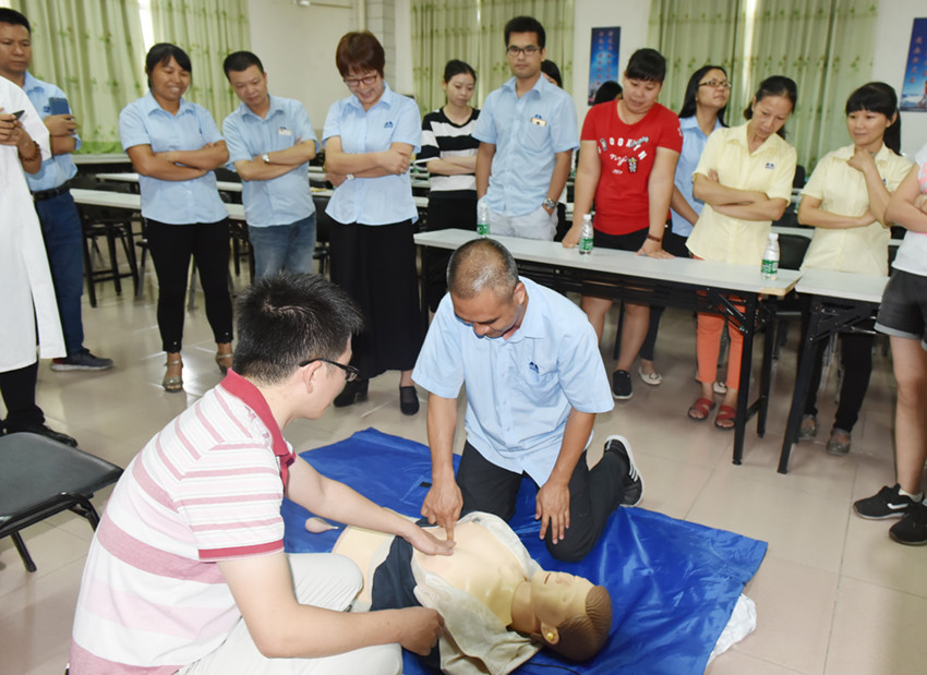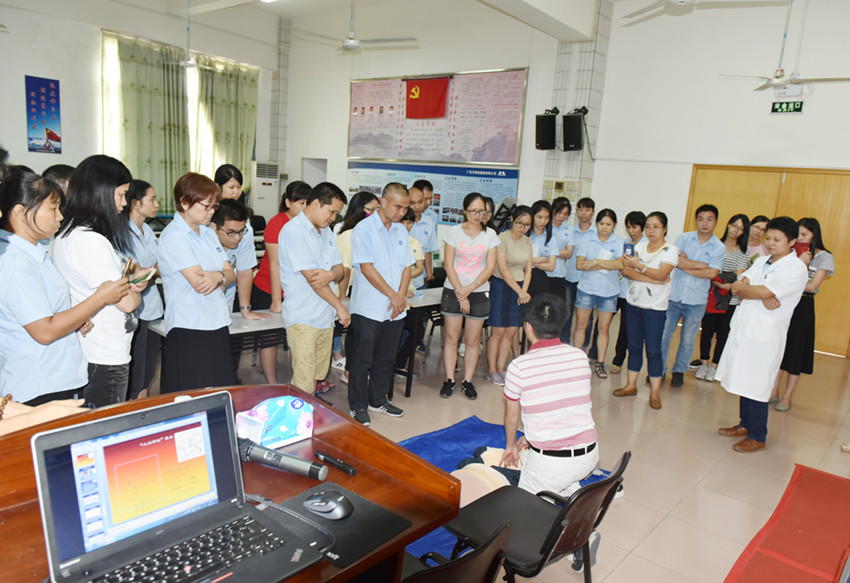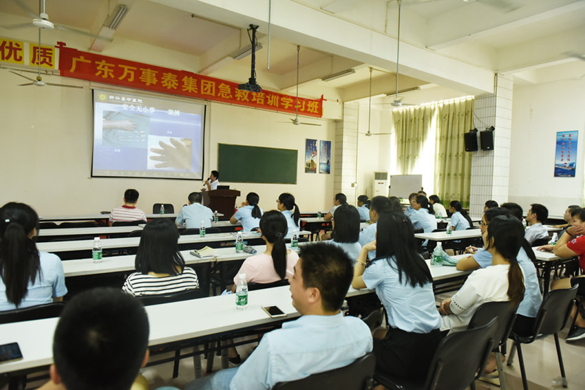 集团讯 9月14日下午,万事泰集团贯彻“安全第一、预防为主、综合治理”的健康、安全方针,特联合新兴县中医院在总部食堂三楼培训室开展企业急救培训班课程,集团各部门代表共50多人参加。