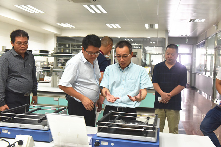 考察团一行重点考察了万事泰集团检测中心,刘总详细地为大家介绍了检测中心的建设情况。在这一过程中,考察团了解到万事泰产品需要经过多道严苛的检验检测,才能放心送到用户手中。并且产品必须符合中国、美国以及德国等多国的品质标准体系,为用户的食品烹饪安全把关。