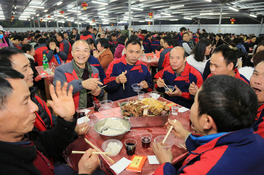 在梁董、刘总的祝酒声中,大家聚集在一起,同品百家菜、共吃一锅饭,共叙家长里短,欢声笑语中,溢出的是浓浓的幸福味。
