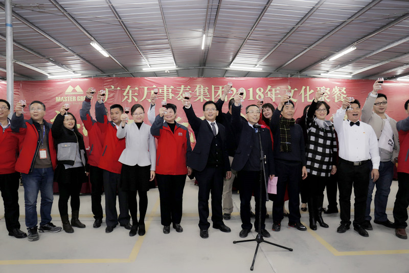 梁董、刘总与员工举杯同饮,为新的一年干杯!