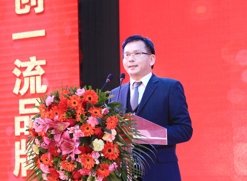 万事泰集团董事长梁桂泉作晚会致辞,给大家带来新年的问候与祝福。