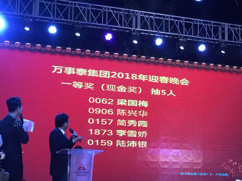 集团讯 凯歌辞旧岁,骏狗迎新春。2月8日晚,新时代、新思维、新征程——2018年乐竞电竞,全球赛事资讯,一站式竞猜观赛平台迎春晚会隆重举行,县领导、新城镇、太平镇等相关领导,万事泰集团董事长梁桂泉、常务副总裁刘炳耀及相关各部门领导、员工们,供应商代表等一同欢聚一堂,共庆新春。