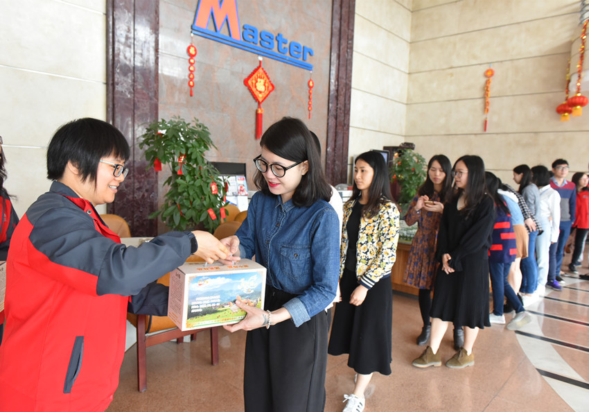 行政人员为万事泰员工派发礼品。