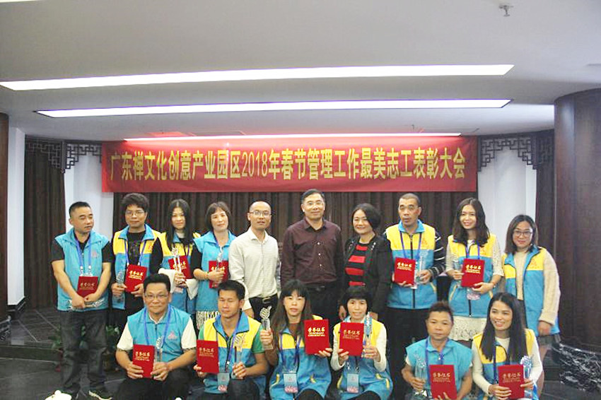 广东禅文化创意产业园区2018年春节管理最美志工表彰大会现场。