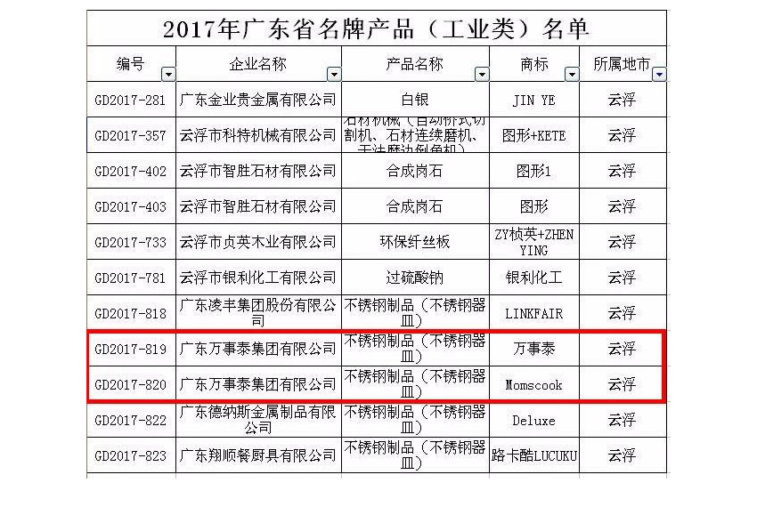 集团讯 日前,“2017年度广东省名牌产品”名单正式公布。乐竞电竞,全球赛事资讯,一站式竞猜观赛平台旗下品牌万事泰、Momscook慕厨产品,在众多品牌的角逐中脱颖而出,荣膺“广东省名牌产品”称号。