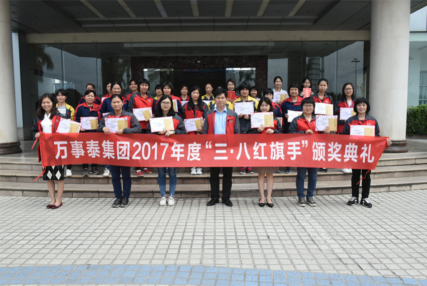 万事泰集团每年都会颁给优秀女员工“三·八红旗手”荣誉称号,主要表彰在过去一年里,在生产上、管理等方面涌现出的妇女先进人物,对她们的辛勤付出表示衷心的感谢。另外,希望受表彰的女员工们再接再厉、立足本职,勇于奉献,继续发扬“三·八红旗手”精神,在各自的工作岗位上再创佳绩。同时,号召公司全体员工以“三·八红旗手”为榜样,学比赶超,一起为美好未来努力拼搏。