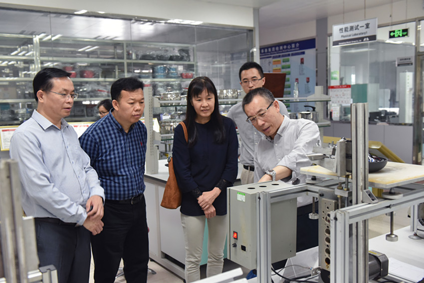 调研组一行在集团副总裁刘炳耀带领下,先后参观我司的智能整体厨房展厅、检测中心、技术中心和生产车间。调研中,调研组一行认真听取了刘总对集团的发展历程、发展规模以及技术创新成果和优质产品等介绍,并详细了解了集团产品的生产工序、工艺及技术情况。