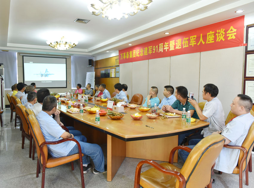 集团讯 8月1日,为庆祝中国人民解放军建军91周年,弘扬军人作风,凝聚团队士气,万事泰集团召开了庆 “八一”建军节暨退伍军人座谈会。会议由党支部书记、行政部经理陈永锦主持,集团总裁办主任梁贤武出席了会议,退伍军人职工30余人参加了座谈会。