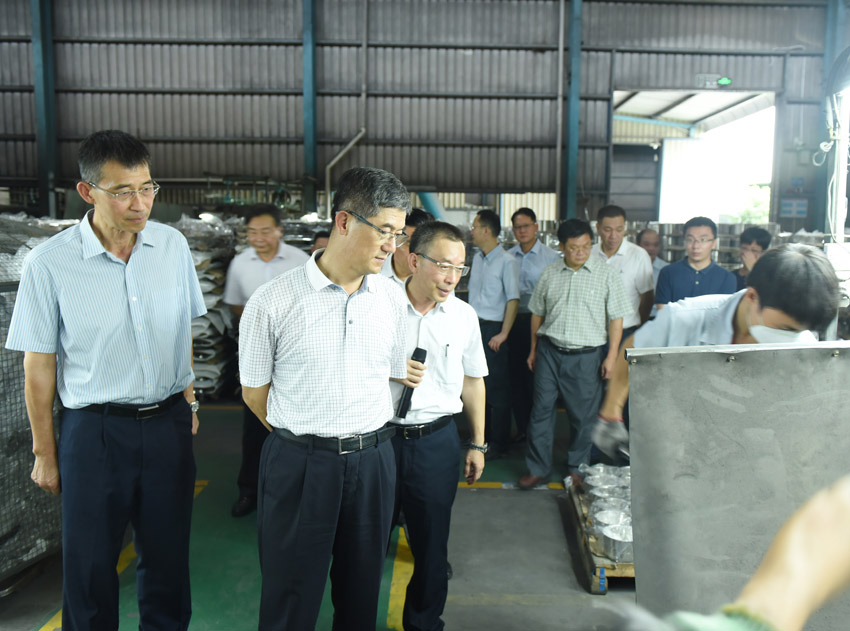 黄书记一行先后参观了万事泰事业部开料车间、冲压复底车间、砂光装配车间、装配车间以及品质部检测中心。期间,刘总就公司的生产情况、自动化设备投入使用情况以及未来发展的蓝图向黄书记作了详细的介绍。在听取介绍后,黄书记对万事泰的生产自动化、生产管理标准化以及对产品质量的严格把控表示高度赞扬,也对万事泰集团为云浮市经济发展作出的积极贡献表示感谢。此外,他还表示,市委、市政府将努力为企业创造良好的发展环境,加强各相关部门与企业的沟通,加大力度扶持地方企业的发展,希望万事泰能把握机遇,加速企业转型升级,加大创新发展力度,擦亮云浮品牌,助力云浮经济高质量发展。