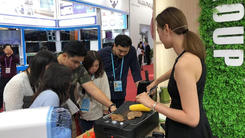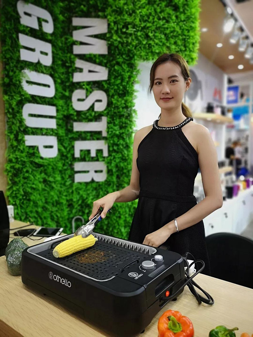 本次参展,电器公司重点推出烧烤类、磨刀类、奶泡机类和婴儿用品类小家电产品。其中,烧烤类的无烟电烤盘一经推出,就收到了大量客户的询价。客户们对它产生了浓厚的兴趣。这个电烤盘采用的是堆叠式设计,使安装更简易,清洗更方便。它通过内置的风扇及滤网能最大程度地消除烧烤时产生的油烟,适用于厨房、客厅、办公室,甚至卧室等各种室内环境,让人们随时随地享受烧烤的乐趣,同时又能避免满屋油烟的困扰。