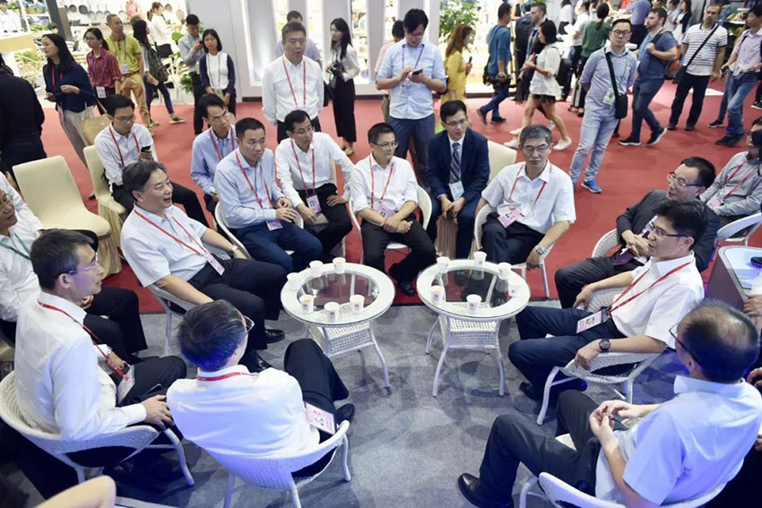 刘总代表新兴县不锈钢商会与万事泰集团向调研领导分别作了工作汇报,详细介绍了企业发展情况、应对中美贸易摩擦的措施和本届广交会参展情况。