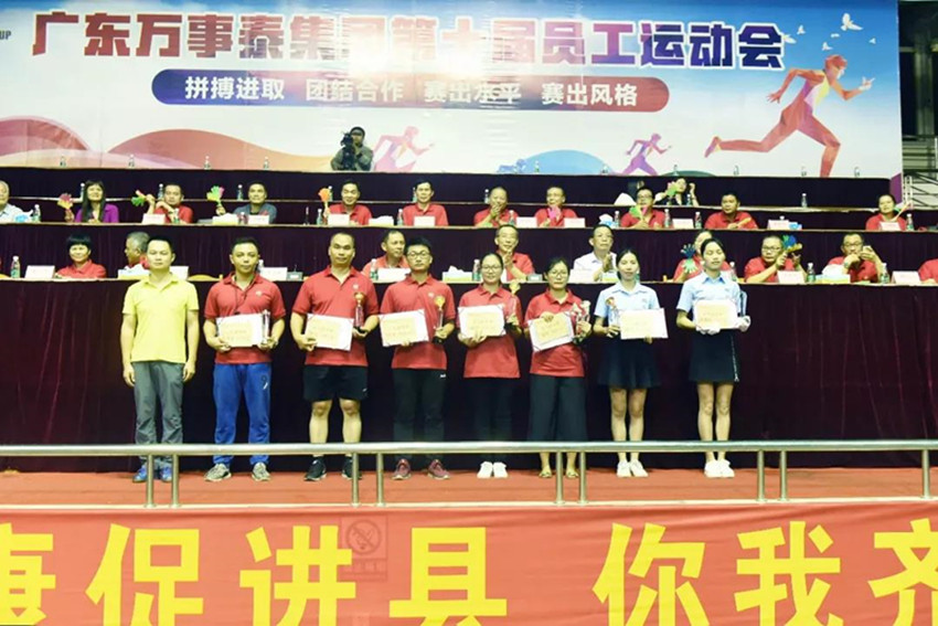 他还希望,秉承“共创、共享、共赢”这一理念,全体员工一起努力,将万事泰的员工运动会办成万事泰企业形象的一张名片,影响越来越大,越办越好。同时将运动场上奋勇拼搏、敢于争先的精神发扬到工作中去,为全面实现集团新的五年计划战略目标而努力奋斗!