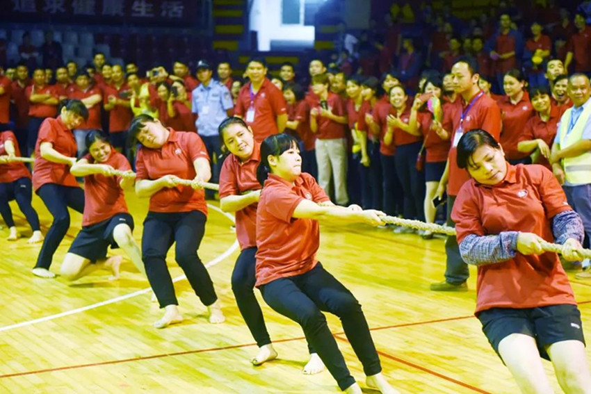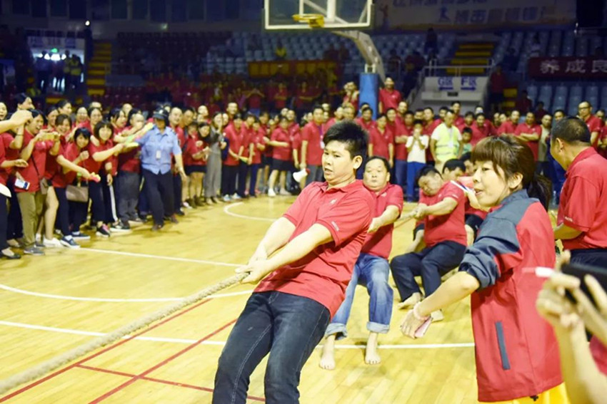 在闭幕式正式开始前,作为本届运动会重头戏比赛项目的拔河总决赛精彩上演,对阵四支代表队展开角逐,闭幕式的开始营造了良好的气氛。