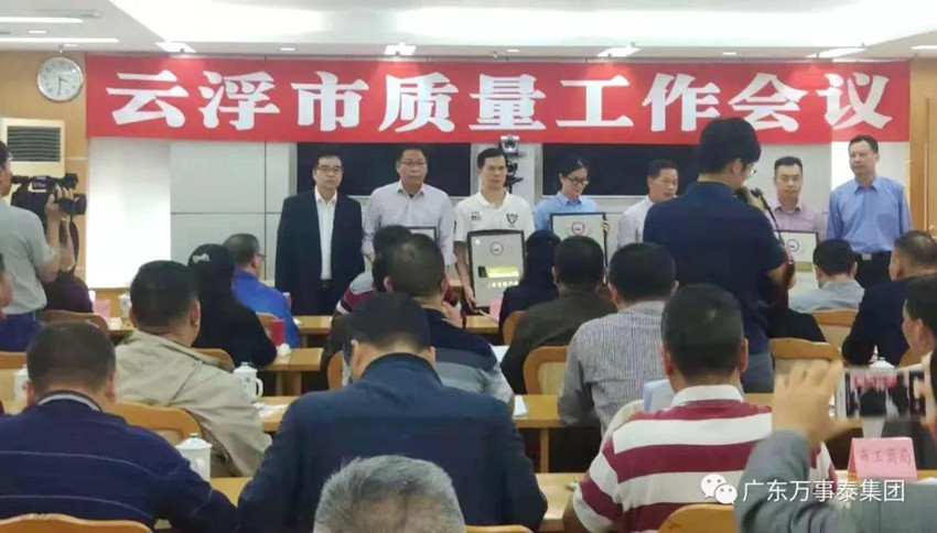 集团讯 12月5日下午,云浮市质量工作会议在市行政中心举办,会上对获得2017年广东省名牌产品称号企业授予牌匾。万事泰行政部经理陈永锦参加了本次会议并接受授牌。