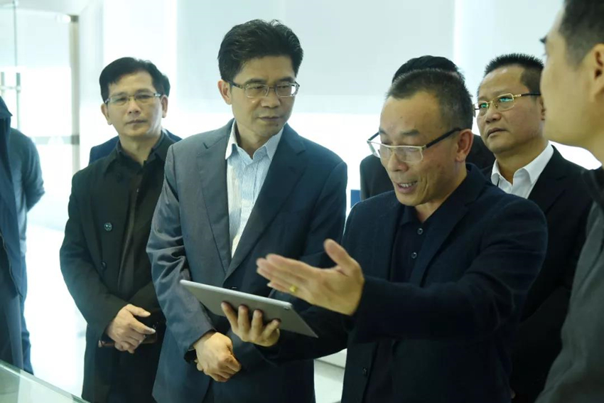 新兴县经信局长陈子雄,集团总裁办主任梁贤武、总裁办助理欧剑华、行政部经理陈永锦、信息中心负责人苏伟锦陪同出席活动。