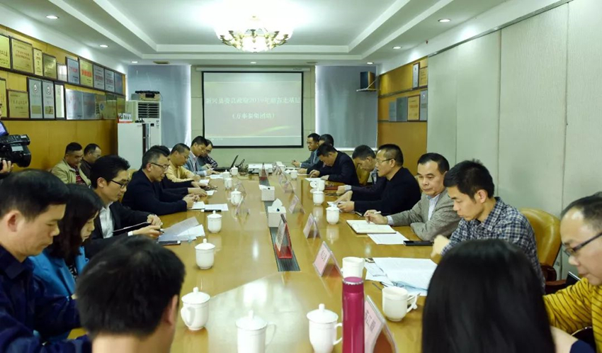 集团讯 2月28日,新兴县委县政府2019年新春走基层(万事泰集团站)座谈会在集团总部会议室举行。新兴县县委书记唐谊,县长袁伙月率领县四套班子领导及县委县政府相关部门负责人一行到我司座谈交流,县领导梁锦钊、梁国华、陈就庆、谭志春、徐广志、苏江毅参加活动。集团董事长梁桂泉、常务副总裁刘炳耀热情接待并参加了座谈会。