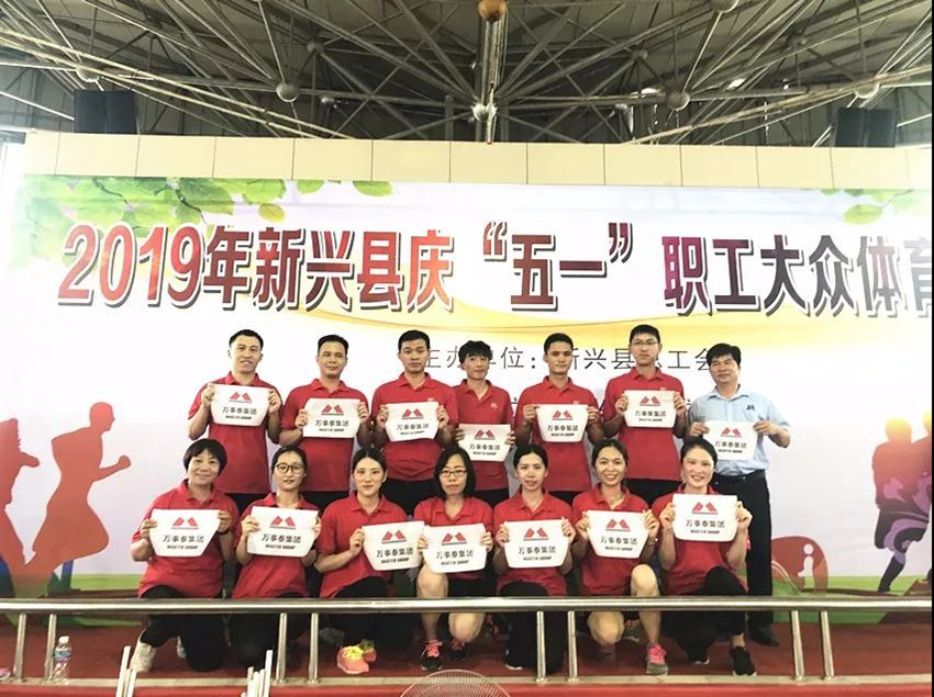 4月25日,由新兴县总工会举办的庆五一职工大众体育运动会在县体育中心隆重举行。大赛有来自县内各类企业、事业单位和各级机关单位共26支代表队参加。万事泰集团工会主席梁洪光率领万事泰参赛代表参加了本次运动会。