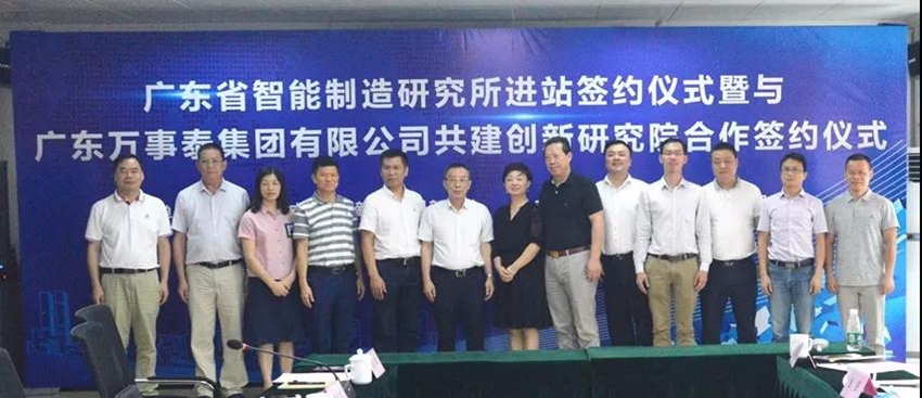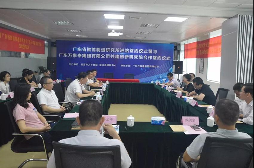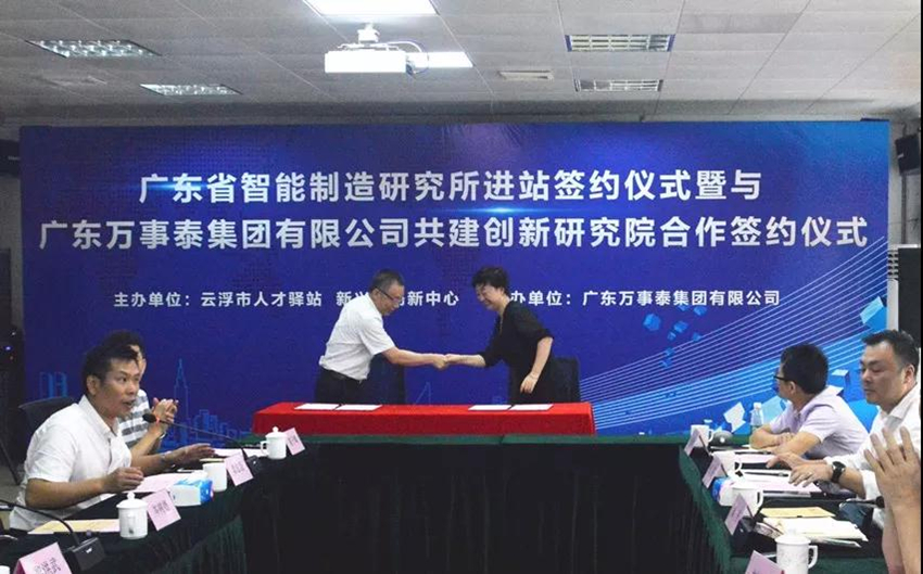 在签约仪式上,集团常务副总裁刘炳耀代表万事泰集团与广东省智能制造研究所业务部部长黄丹共同签署了“共建创新研究院”合作协议。万事泰集团将以此为契机,与省智能制造研究所在未来开展紧密合作,抓住落实“人才强县战略”的重要机遇,致力于标准化、自动化、智能化等多领域合作研究,加快驱动企业转型升级,实现跨越式创新发展,为新兴县及云浮市的经济发展做出更大的贡献。