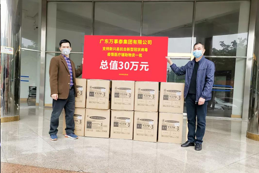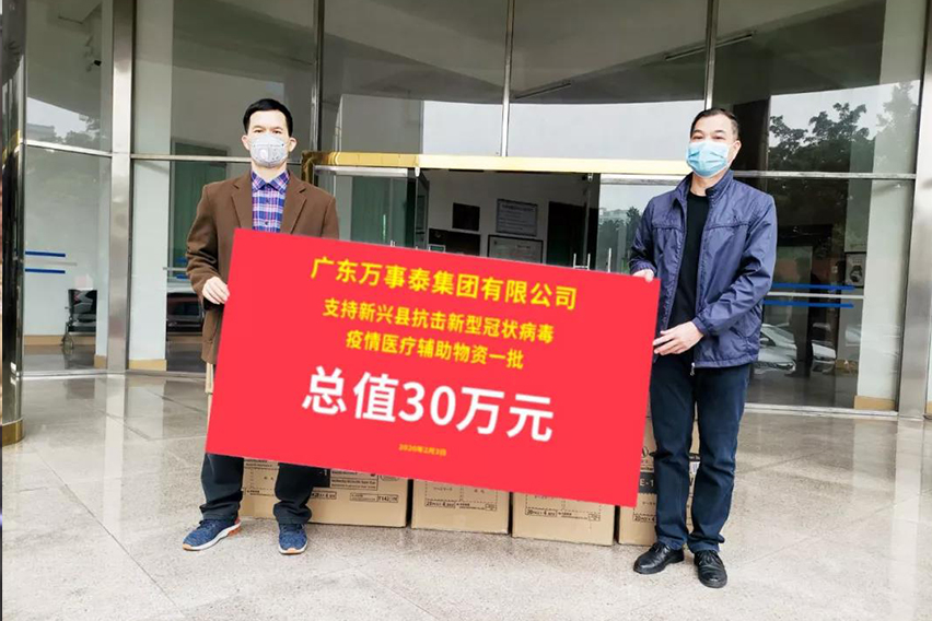 2月3日,万事泰集团向新兴县人民政府捐赠了价值30万的防疫物资一批。另还向县不锈钢商会捐资5万元,用于支援政府相关防疫单位购置防疫所需物资。自战“疫”打响以来,万事泰在做好自我防控的同时,积极践行社会责任,诠释企业担当,着力落实捐赠事宜,力争为打赢这场防疫攻坚战贡献自己的一份力量。
