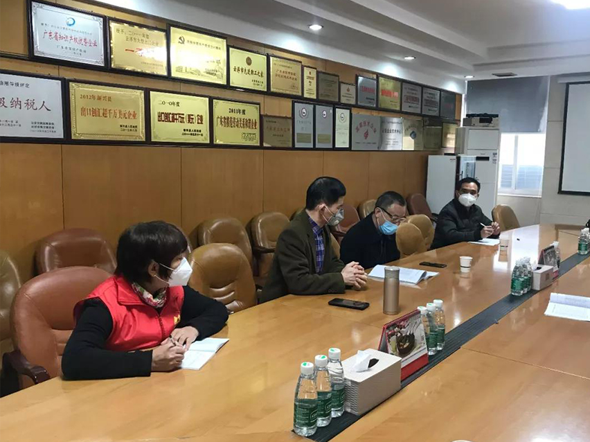集团讯 2月3日上午,县人大主任陈就庆、县工信局局长黄志活等一行到我司巡查新型肺炎病毒疫情防控工作,集团常务总裁刘炳耀、行政部经理陈永锦接待并向他们详细汇报了集团防控工作情况。