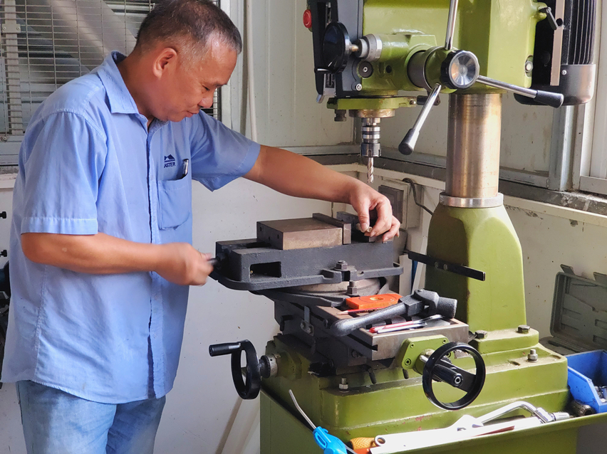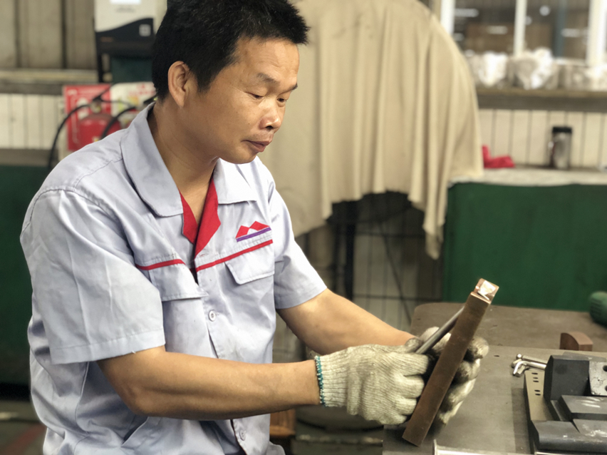 梁杰创,他是厨具中心工程部的一名模具工,至今已从事模具工作17年,他用兢兢业业、追求卓越的工匠精神,成为万事泰模具制造开发的主力军之一。他主要负责制作极具挑战性的异型模具,如今精湛的工艺技术离不开这17年来一步步的探索、学习和沉淀。他认为担任此份工作最重要的是听取各方意见,找出最佳方案。模具被誉为“工业之母”,它是流水线生产的必要条件,模具生产枯燥无味,需要不断打磨、校准,一遍一遍反复修正,可正是这不计其数的打磨,更能体现出这份工作的一种精益求精的坚持。
