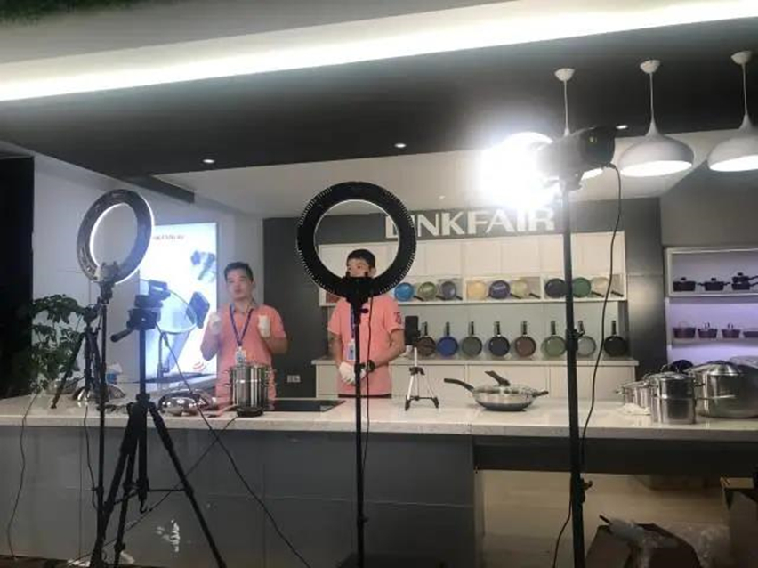 在万事泰集团,总共安排了十八场直播和一场新品发布会,充分利用自有厨房样板间和产品展示厅等资源,直接把直播间设在实体厨房,5名业务主播们通过详细讲解、烹饪演示以及插播产品视频,按产品类别来直播销售该公司本届的新产品。