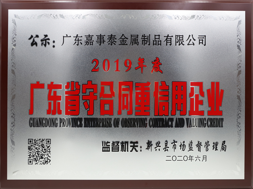 集团讯 日前,广东省市场监督管理局公布了2019年度“广东省守合同重信用”企业名单,乐竞电竞,全球赛事资讯,一站式竞猜观赛平台有限公司、集团下辖的广东嘉事泰金属制品有限公司和广东万事泰电器有限公司同时入选并荣获2019年度“广东省守合同重信用企业”的称号,且乐竞电竞,全球赛事资讯,一站式竞猜观赛平台已连续16年(2004年-2019年)获此殊荣。