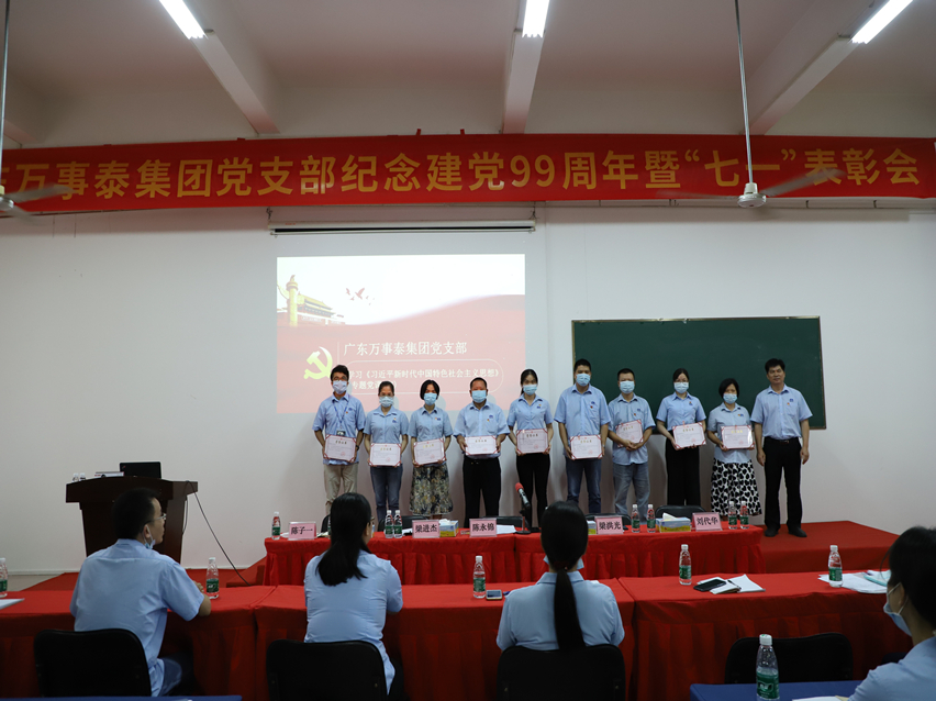 集团讯 7月25日,万事泰集团党支部在总部饭堂三楼培训室召开庆祝建党99周年暨表彰大会,集团全体党员参加会议,会议由党支部书记陈永锦同志主持。