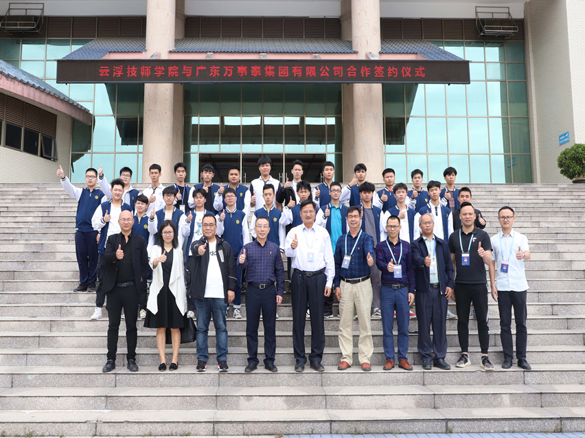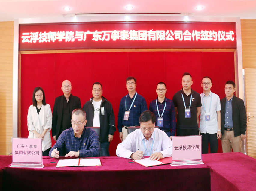 集团讯 10月23日上午,万事泰集团与云浮技师学院举行了简朴而又隆重的合作签约仪式,双方顺利开启校企合作新的篇章。云浮技师学院覃敬文院长、梁新林副院长、杨志义科长、冯文妍主任、陈植辉主任等院方领导、教师出席了仪式。万事泰集团执行总裁刘炳耀、人力资源中心总监赵帆等集团领导出席了仪式。活动由云浮技师学院副院长梁新林主持。