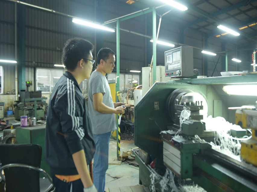 另一对师徒正全神贯注地用打锣机打磨着模具,师傅欧树新耐心教授徒弟打模技术,逐一讲解注意要领。王家伟虚心地向师傅请教,用激情与活力,传承着师傅的经验与沉稳。