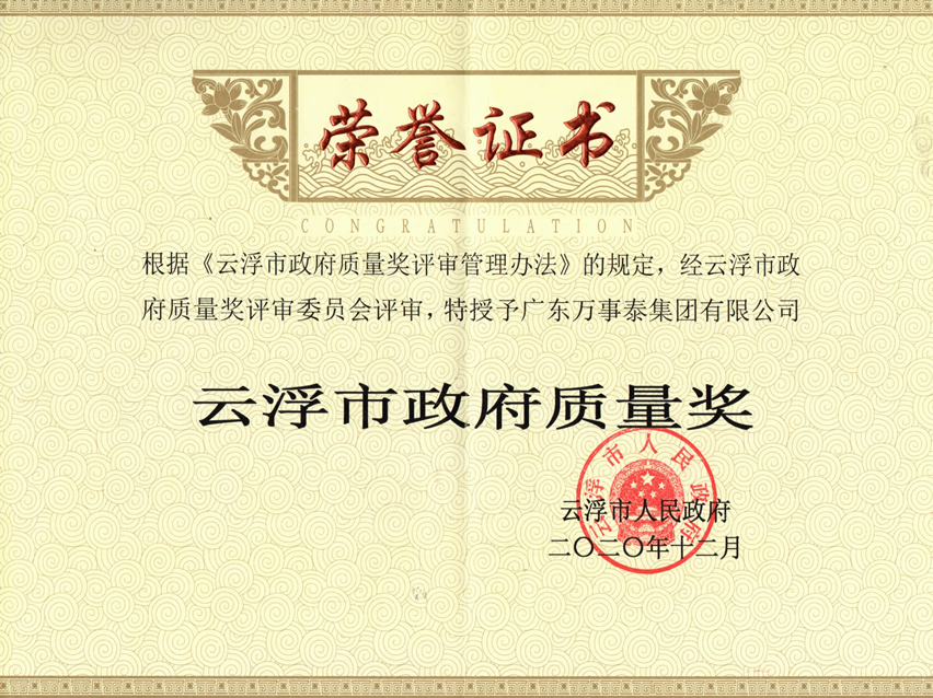 集团讯 近日,云浮市政府召开了第四届云浮市政府质量奖评审会议,经评审,乐竞电竞,全球赛事资讯,一站式竞猜观赛平台荣膺“云浮市政府质量奖”。获此荣誉,是社会各界对万事泰集团综合竞争力、整体管理水平、生产制造能力及高质量发展的充分肯定。